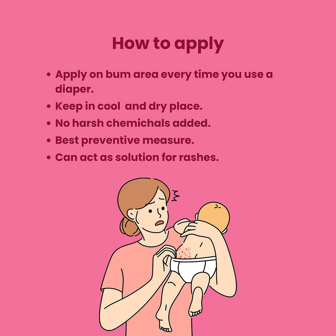 - The Aloe Vera and Neem in the cream help to calm irritated skin and speed up the healing process. Aloe Vera moisturizes and soothes, while Neem provides natural antimicrobial properties, both working together to reduce inflammation and protect your baby’s skin from further irritation. The cream creates a protective barrier that keeps your baby’s skin moisturized and safe from external irritants. - How do I use MyDvija Diaper Rash Cream?