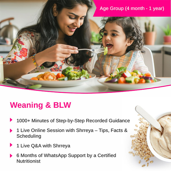We are aiming to guide you Why you should start Solid food Introduction on time ?How it Should be Start ? How it will impact on your child’s Lifestyle?Why right nutrition and Right Approach is very important for child ? So Let’s know about our entire Course Weaning and Blw step by step Peaceful solid food introduction.